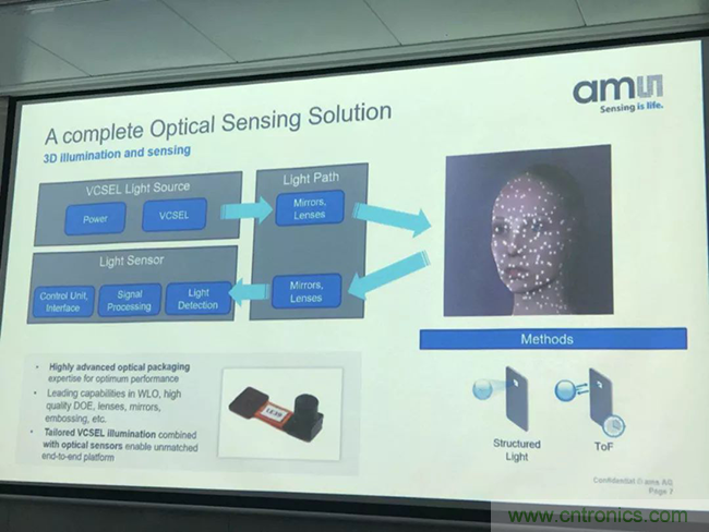 收購案例#2:艾邁斯半導體曾收購一家在做面部識別軟件方面特別強的企業(yè)KeyLemon,這家公司已有7年的歷史了,具備領先的3D人臉識別知識產(chǎn)權庫。同時,他們的軟件現(xiàn)在已經(jīng)能在安卓系統(tǒng)中運行了。因此,艾邁斯半導體可以在消費類應用中提供可用于3D感應的軟件+硬件解決方案。“我們本身的傳感優(yōu)勢,加上收購企業(yè)的技術,我們便可提供世界一流的完整解決方案。除了VCSEL之外,還有TOF(飛行時間)和結構光等,可以通過我們的傳感技術整合成一個完整的解決方案。” Everke指出。